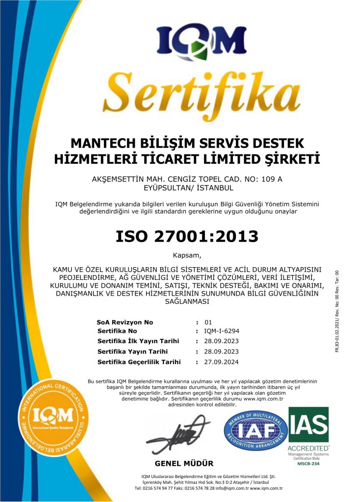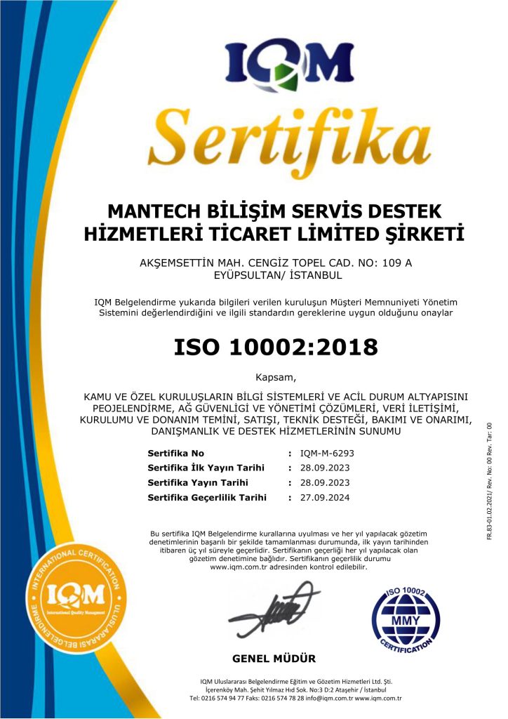 2013 yılından bu yana büyük bir kararlılıkla sürdürdüğümüz “Toplam Kalite Yönetimi” serüvenimizi, uluslararası standartlardaki başarımızı kanıtlayan ISO 27001 , ISO 9001, ISO 10002 belgeleri ile tescilledik. Bizim için kalite, sadece bir belge değil; operasyonlarımızın her aşamasına nüfuz etmiş bir çalışma disiplinidir.